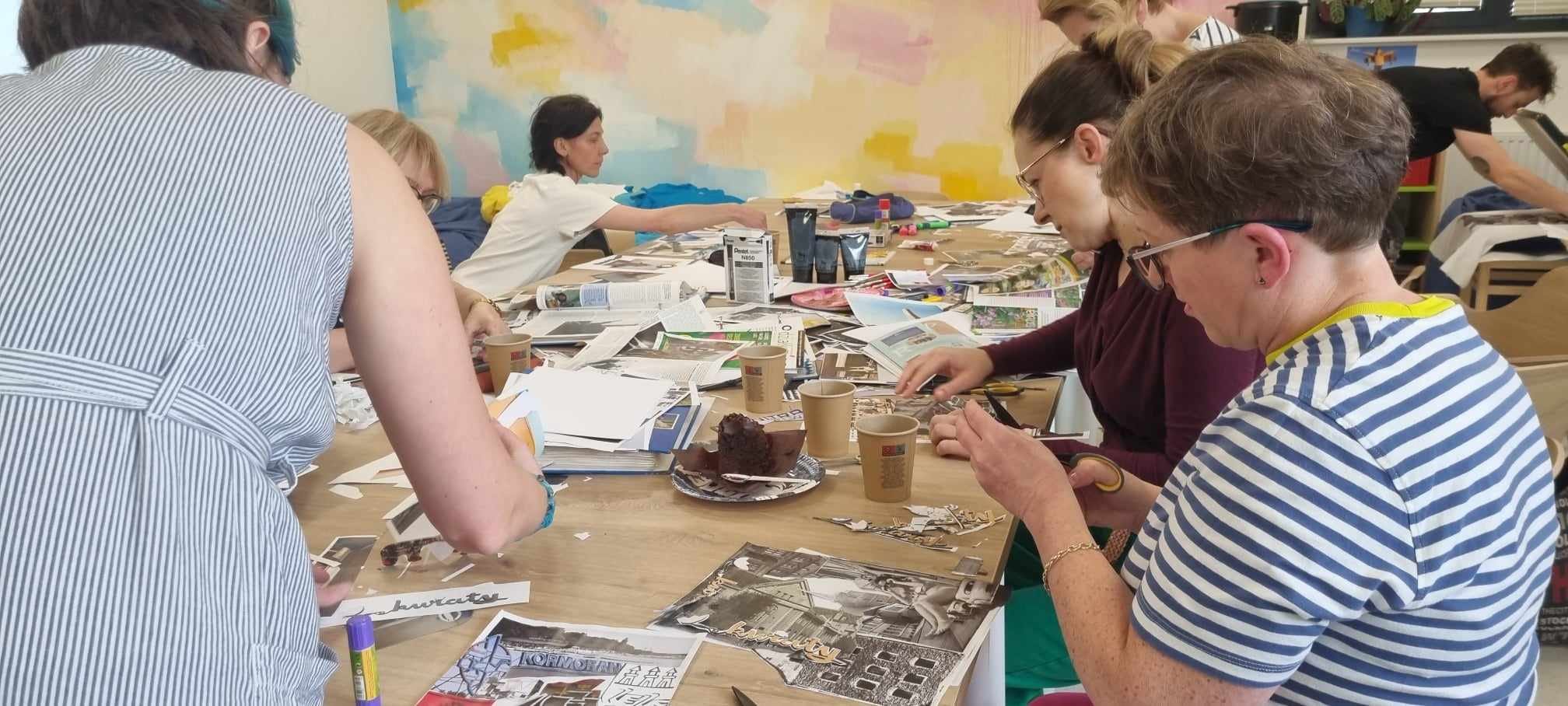 Ten kreatywny czas pozwolił również wymienić się ciekawymi, nostalgicznym historiami o czasach retro kurortu. Miejska Biblioteka Publiczna na Ogrodach oraz fundacja Kołobrzeski Nurt stworzyły przyjazne przestrzenie, miłą atmosferę i idealne warunki do pracy twórczej, co zaowocowało przepięknymi kolażami.