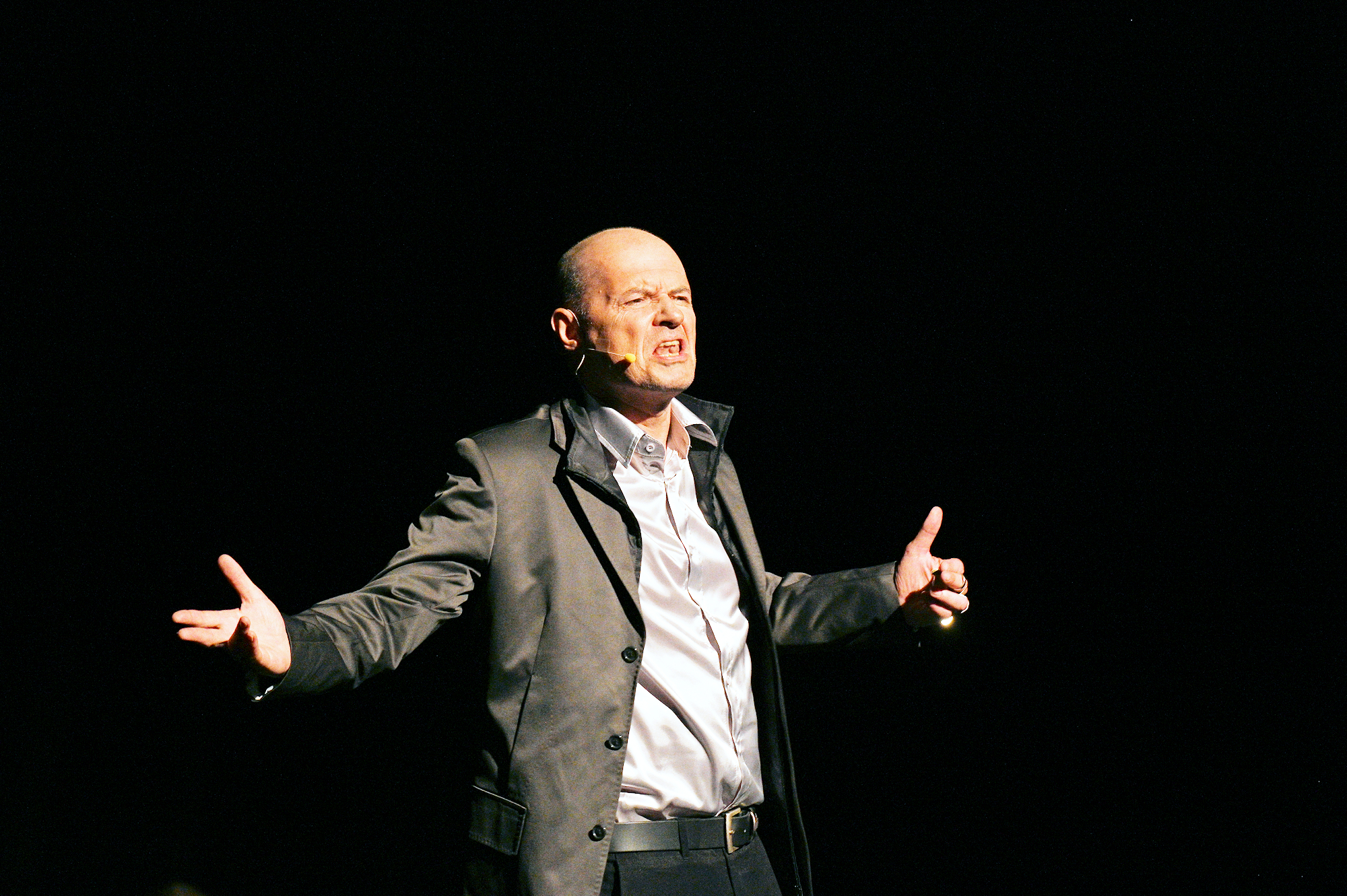 Na pierwsze danie publiczność kołobrzeska otrzymała spektakl „Książę i Luna”, wyreżyserowany na podstawie własnego scenariusza przez Przemysława Tejkowskiego, który też pojawił się na scenie (jako Książę) w towarzystwie znakomitej Adrianny Kieś (Luny). Nadprzyrodzona perspektywa, z jakiej oboje kibicują ludzkim sprawom, przywodzi na myśl antyczne przekonanie, że bogowie mają niezły ubaw, patrząc na starania i zabiegi, radości i bóle „jednodniowców” (jak zwykli nazywać nas, ludzi). Zwłaszcza Książę, którego kiczowata elegancja jakoś zdaje się sugerować, że mamy do czynienia z Księciem Ciemności, szydzi z naszych spraw i naszych marzeń. Przeciwnie Luna, delikatny płomyk czułości i empatii, rozumie to „boże igrzysko”, którym jesteśmy, może lepiej niż rozumiemy sami siebie. Posłuszna rozkazom Księcia, wciela się nie tylko w ludzkich, lecz także w zwierzęcych bohaterów, brawurowo interpretując Herbertowskie bajki. Turla się Wszechświat jak żelazna beczka wypełniona nicością, toczy się dialog, stopniowo przeobraża Księcia, który z demona ironii staje się jednym z nas – zdejmuje swoje srebrne lakierki i wraz z Luną zasiada na beczce, by wspólnie doświadczyć zmysłowej radości (to znaczy smaku szarlotki), a akceptacja ułomnego, lecz godnego miłości człowieczeństwa staje się – nawet – akceptacją śmierci. I to wszystko wyekstrahowane ze słów Herberta! I jeszcze Luna i jej wstrząsająco prawdziwa interpretacja wiersza „Co robią nasi umarli”...