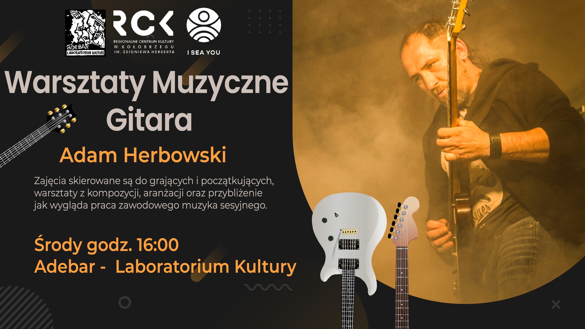 Zajęcia skierowane są do grających i początkujących, warsztaty z kompozycji, aranżacji oraz przybliżenie jak wygląda praca zawodowego muzyka sesyjnego.