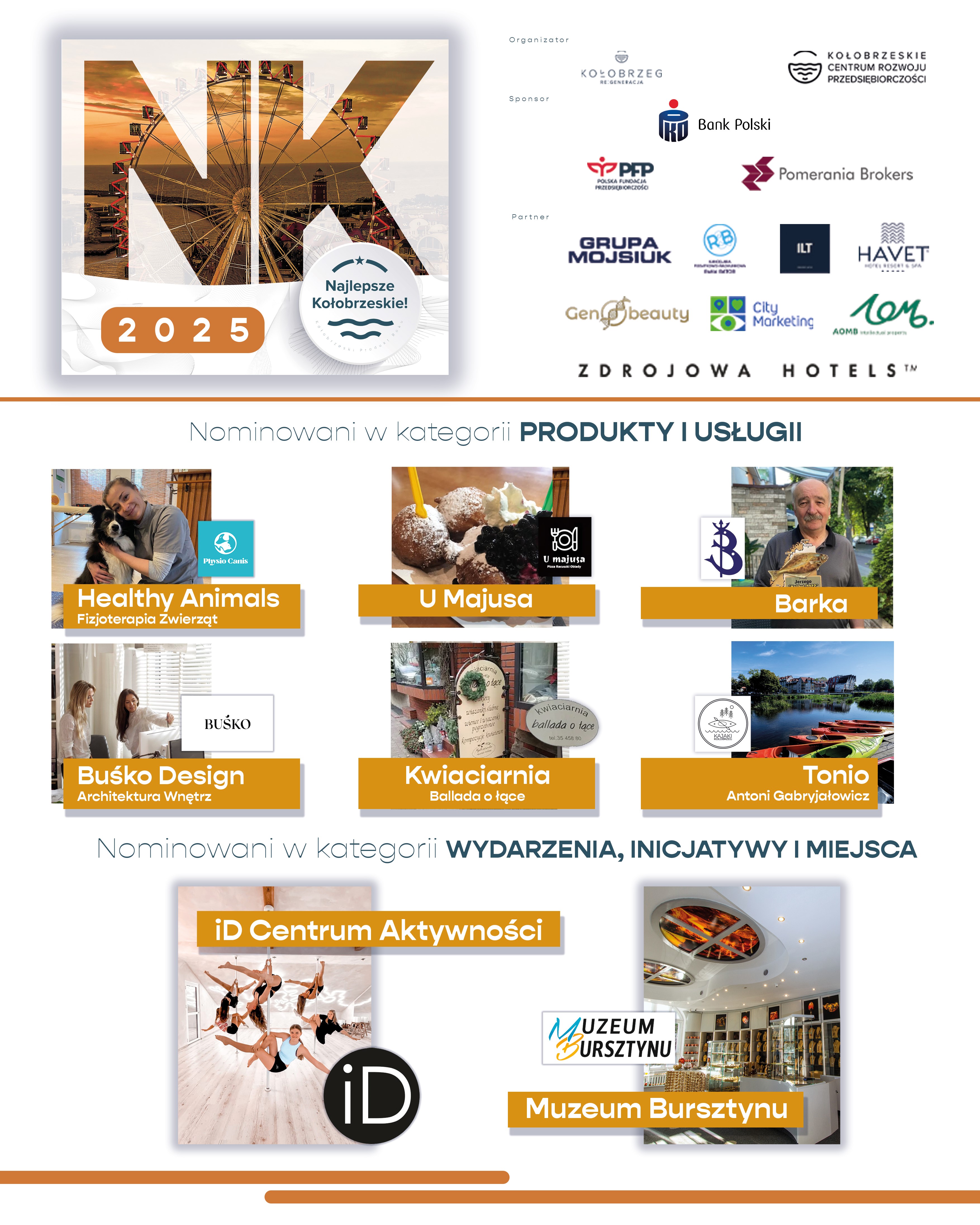 W gronie Partnerów i Sponsorów edycji 2025 znaleźli się: PKO Bank Polski, Polska Fundacja Przedsiębiorczości, Pomerania Brokers, Kancelaria Podatkowo-Rachunkowa Rafał Bator, Grupa Mojsiuk, Genobeauty, City Marketing, Zdrojowa Hotels, Kancelaria Prawna ILT, AOMB oraz Havet Hotel Resort & Spa. Wspólnie tworzymy przestrzeń, w której lokalny biznes może rozkwitać z dumą.