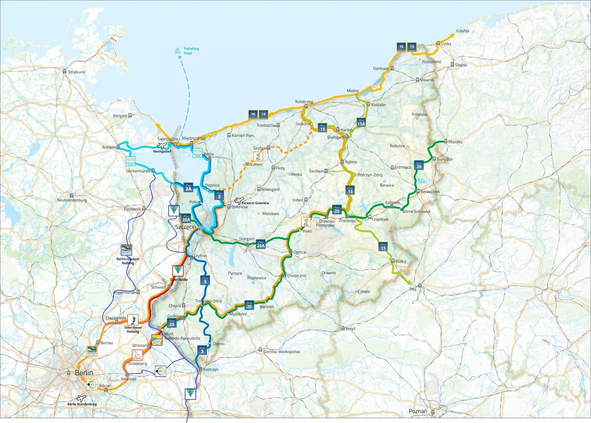 W II kwartale 2026 roku planowane jest ogłoszenie przetargów na kolejne odcinki: Stepnica–Babigoszcz, Kłodzino–Golczewo oraz Upadły–Świeszewo. Do 2029 roku ma powstać całkowicie nowa część trasy między Stepnicą a Rymaniem o długości ponad 82 km. Cały szlak od Berlina do Kołobrzegu będzie liczył zaś około 800 km.