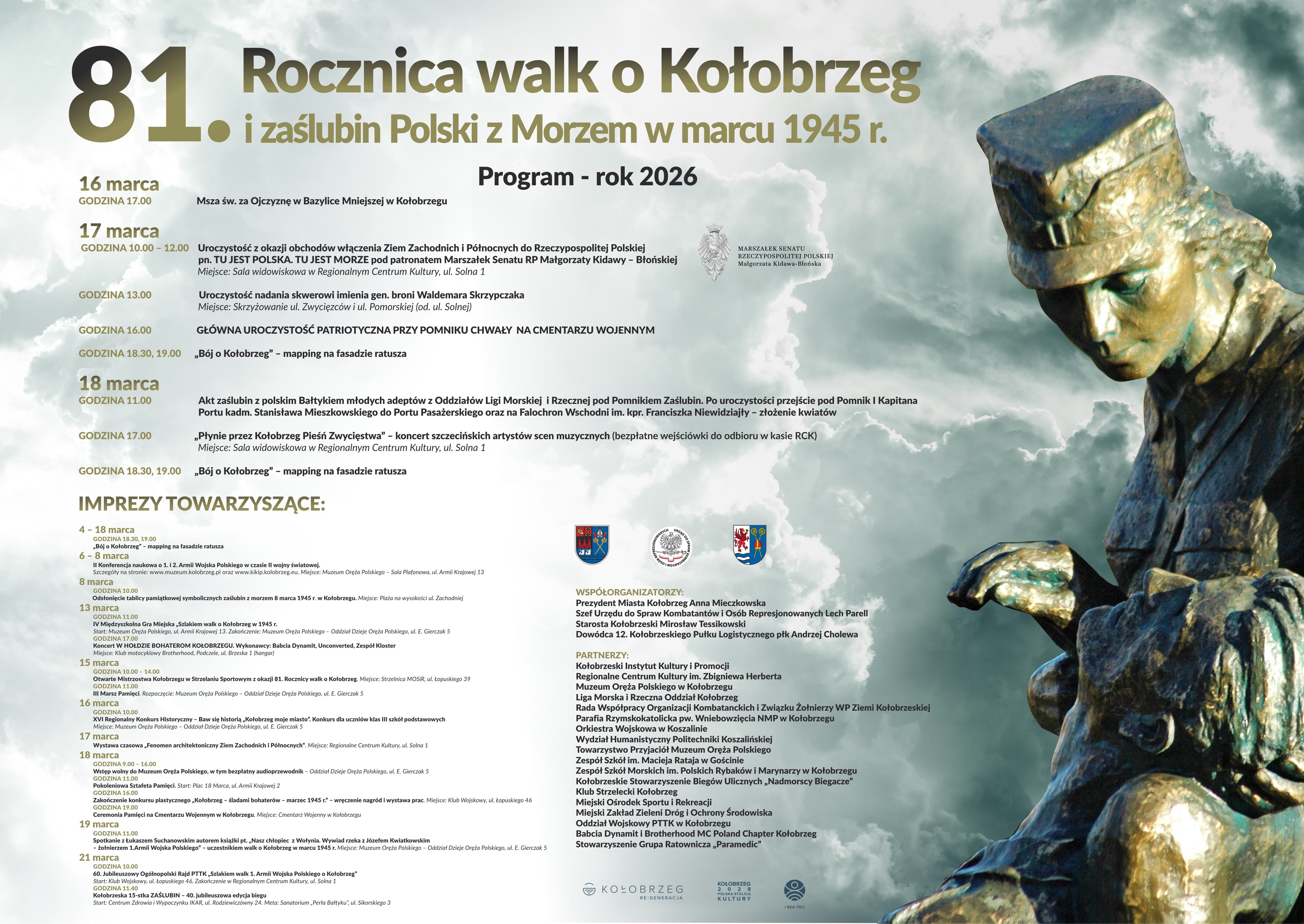 Serdecznie zapraszamy do wspólnego upamiętnienia 81. rocznicy walk o Kołobrzeg oraz historycznych zaślubin Polski z Morzem, które miały miejsce w marcu 1945 roku.