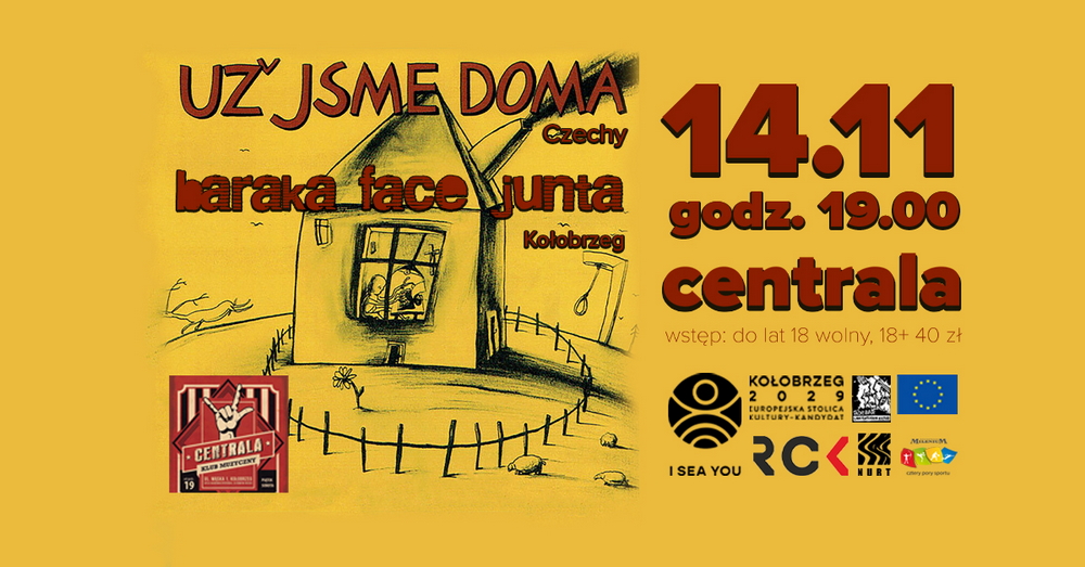 UŽ JSME DOMA to legenda czeskiego undergroundu i światowego post-punka. W krainie Hrabala i Rumcajsa można by ustawić gdzieś między Kultem a Voo Voo - jednocześnie są o wiele bardziej rozpoznawalni na świecie od wymienionych wykonawców – w ich dyskografii są płyty wydane w USA, Japonii, Kanadzie, Francji, Polsce – i oczywiście w Czechach. Od 1987 roku wydali kilkanaście albumów, nagrywali z orkiestrą, chórem, tworzyli muzykę do filmów, a ostatnie zdecydowali się na materiał dla dzieci towarzyszący spektaklowi lalkarskiego teatru ”Buchty a loutky” z czeskiej Pragi. Po ponad TYSIĄCU występów na żywo, w tym ponad stu w Ameryce Północnej, Australii i Japonii, kilkudziesięciu koncertach w Polsce, a nawet kilku występach na Spitzbergenie mają szansę zaprezentować się nowotarskiej publiczności. UJD ma na koncie współpracę z tajemniczymi kalifornijskimi awangardowcami z THE RESIDENTS, japońskim RUINS, dzielili scenę m.in. z PERE UBU, NAKED CITY, MR BUNGLE, THE EX. W Polsce u ich boku można było zobaczyć choćby rozpoczynający karierę zespół LAO CHE, czy MITCH AND MITCH.