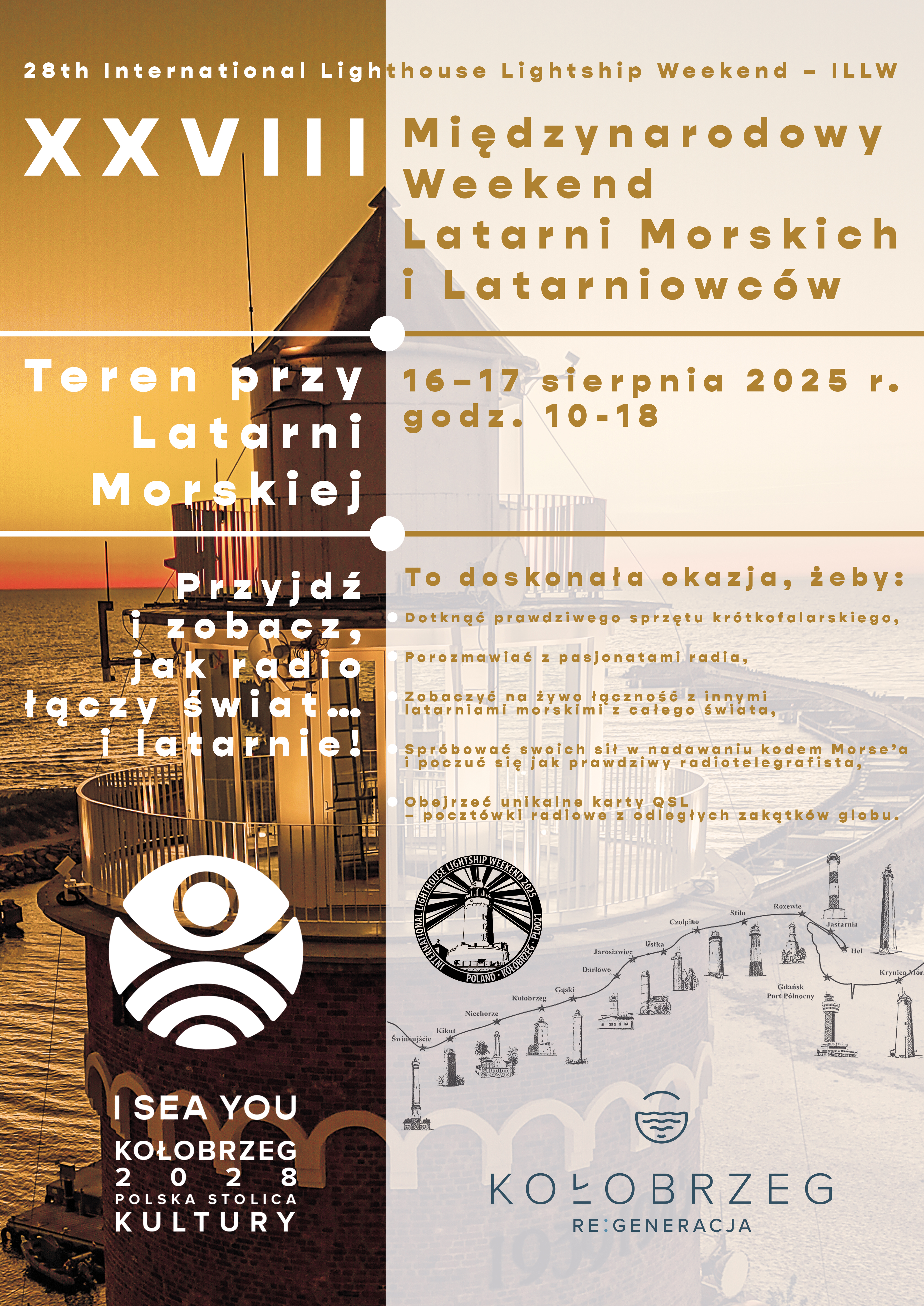 W imieniu Bałtyckiego Stowarzyszenia Krótkofalowców (BSK) w Kołobrzegu oraz lokalnej społeczności krótkofalarskiej z powiatu kołobrzeskiego i okolic, zapraszamy do udziału w 28. Międzynarodowym Weekendzie Latarni Morskich i Latarniowców (28th International Lighthouse Lightship Weekend – ILLW), który odbędzie się w dniach 16–17 sierpnia 2025 r.